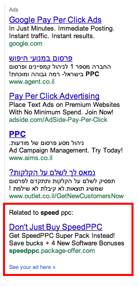לאחרונה ערכתי בגוגל חיפוש, שהניב אך תוצאות ספורות בטור מודעות AdWords הממומנות. אך לא מנוע חיפוש כגוגל יתן לעובדה כזאת למנוע ממנו הקלקות (והכנסות).